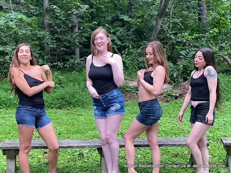 Sitting around the campfire and having a little girl talk time. What would you do if you found these four beauties camping next to you in the woods? Maybe you could invite them over to your campsite for some smores and hot chocolate. After a few to many drinks they get a little daring and decide to get naked for you… after all, when in nature you should be as natural as can be. If you order one of these thongs you are going to be sniffing and stroking as you watch them get naked and strip off everything to be free and naked for your viewing and stroking pleasures.